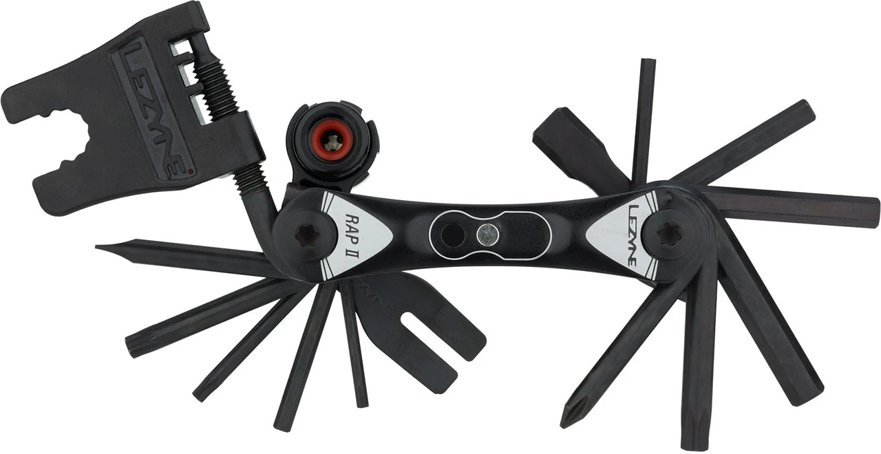 Das Lezyne RAP II 25 Multitool ist mit 24 korrosionsbeständigen Stahlwerkzeugen für fast jede Reparatur ausgestattet, egal ob die Kette gerissen ist oder ein Bremskolben klemmt. Bei Reifenpannen hilft der abnehmbare CO2-Pumpenkopf dabei, Dein Rad schnell wieder fahrtüchtig zu machen.